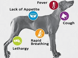 The symptoms are similar to other respiratory diseases and include fever, coughing, runny nose, loss of appetite, and lethargy. Up to 20% of infected dogs develop a serious infection with pneumonia. Seniors, puppies, and brachycephalic breeds often become sicker and require additional medical treatment.