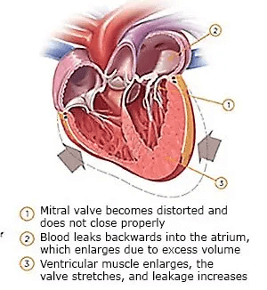 VALVULAR HEART DISEASEThe atrioventricular (AV) valves located between the atria and ventricles are the commonly affected valves, particularly the mitral valve between the left atrium and ventricle. Primary mitral valve disease is usually a degenerative disease, meaning as the valve ages it deteriorates and wears out over time. Disease of the valve tissue prevents the valve from closing properly allowing blood to leak backward from the ventricle into the atrium. As the valve malfunctions and blood flows backwards there is diminished blood flow from the heart out to the body (referred to as reduced cardiac output). Diminished flow to the body signals the heart to work harder and the heart muscle enlarges. As the heart enlarges the valves are pulled further apart, leakage and backflow increase, the cycle repeats, and heart damage progresses. Eventually the heart can no longer pump hard enough to overcome the backflow from a leaky valve. Fluid backs up in the lungs or abdomen causing clinical symptoms and illness. Early diagnosis and treatment for valvular disease has proven to significantly delay the onset of symptoms and illness and prolong the pet’s life span. |