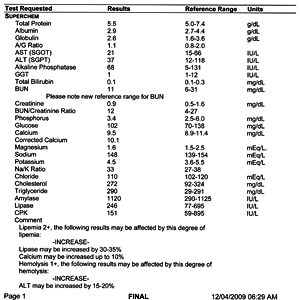 Click on the image to view a sample senior blood profile.